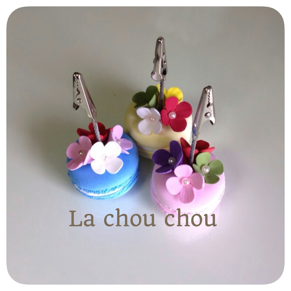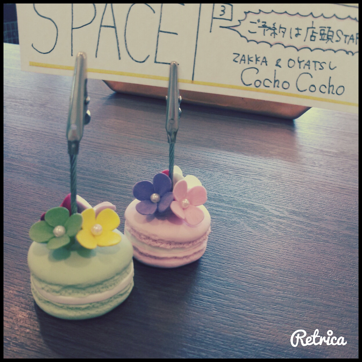 クレイ(紙粘土)で作ったマカロンのカードスタンドです。
