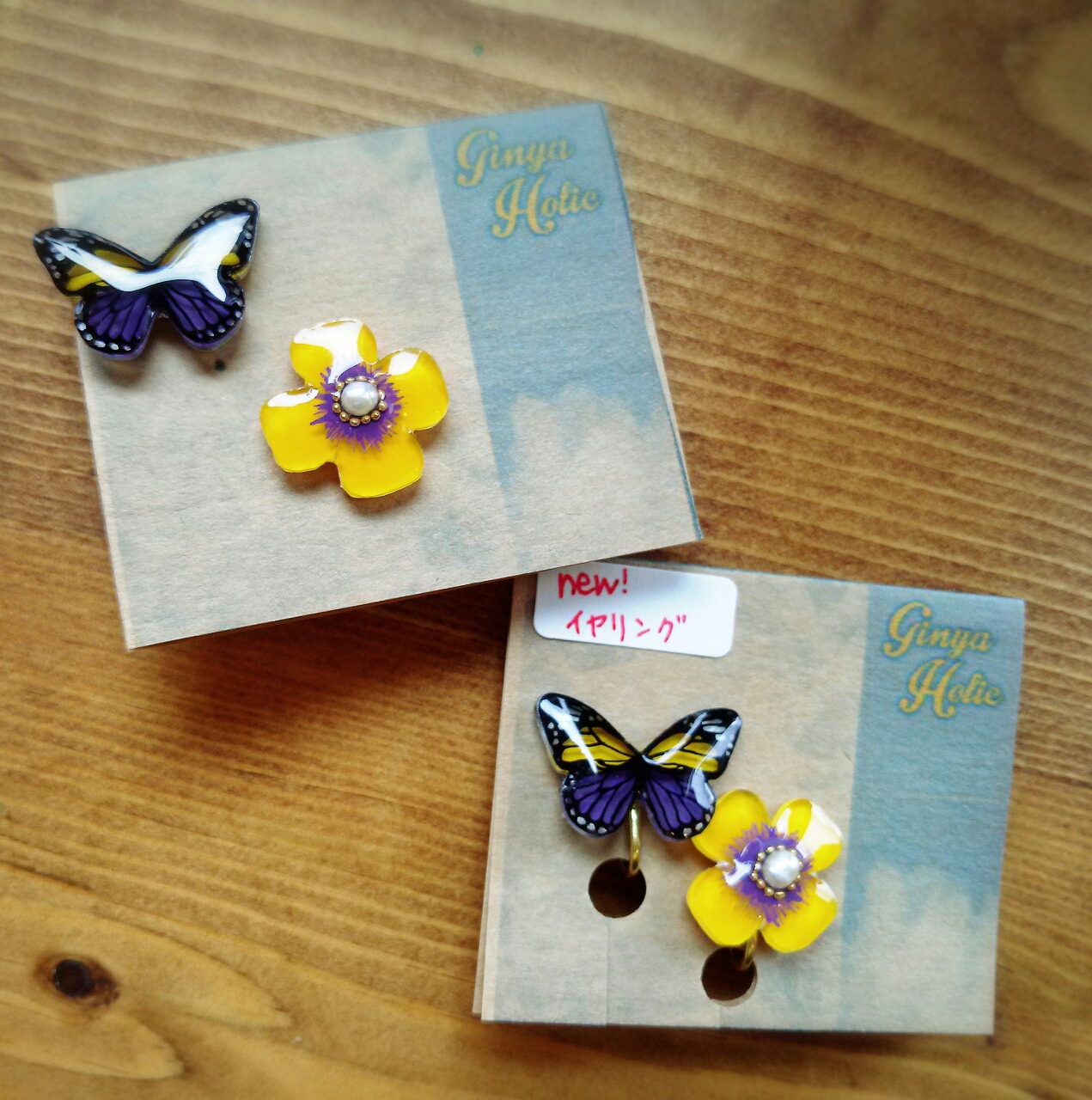 てふてふイヤリング、ピアスを作ってくださいました。