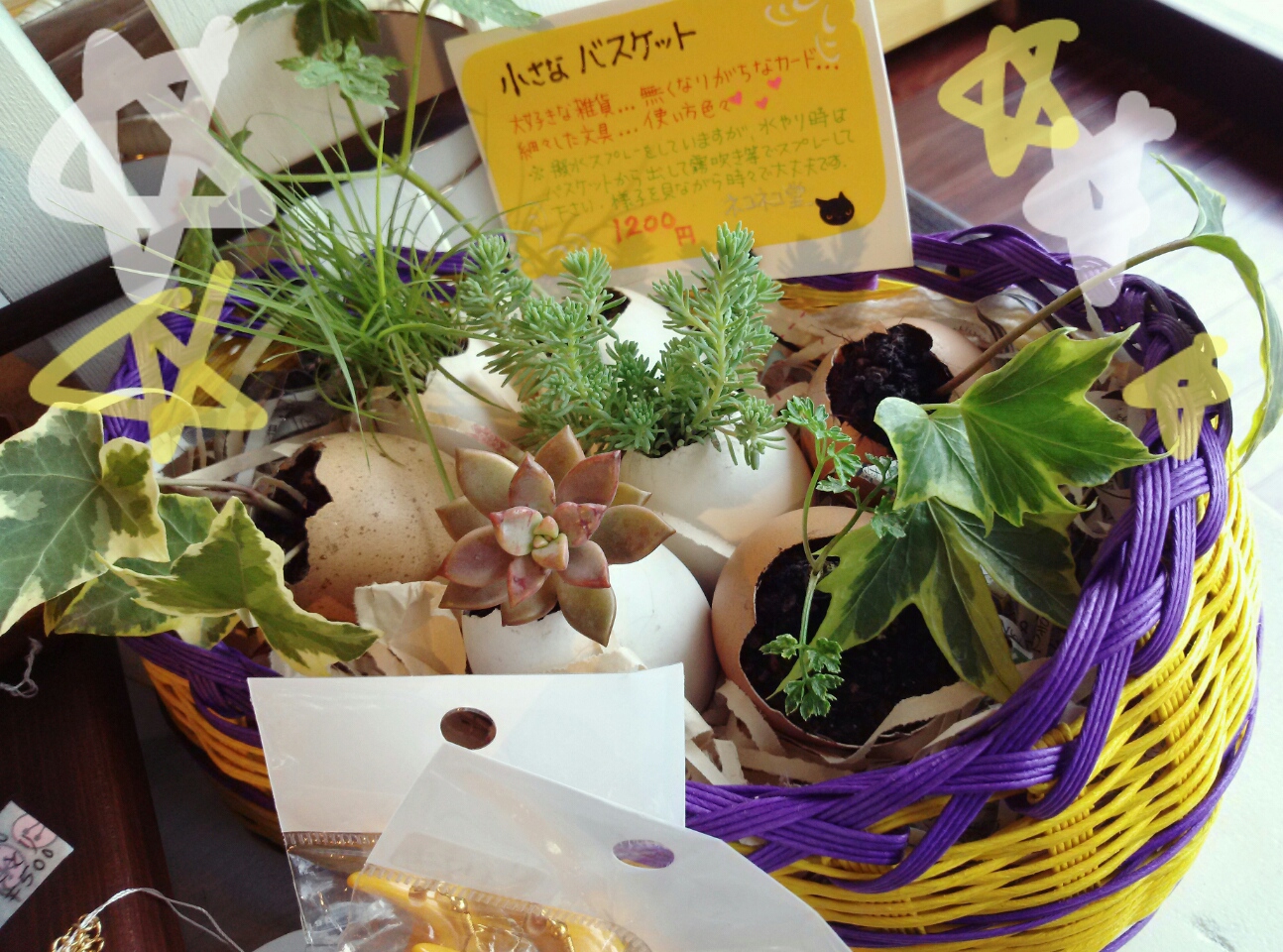 観葉植物はあくまでおまけで付いてるんですが、これが1200yenなんですよ。。。やすぅぅ。